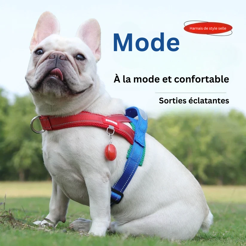 Oui ! Ce harnais est livré avec une pièce personnalisable où vous pouvez ajouter le nom de votre chien. Il vous suffit d'entrer le nom de votre animal lors de la commande, et nous nous assurerons qu'il soit imprimé sur la pièce. Les harnais personnalisés facilitent l'identification de votre chien et ajoutent une touche élégante à son équipement.